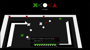 Vertex uses a rock paper scissors style combat system. To change shape, sacrifice a life by hitting a red entity. To gain a life, hit a green entity and increase your score. Consecutive green hits within a short period will increase your streak, and consequently your points!